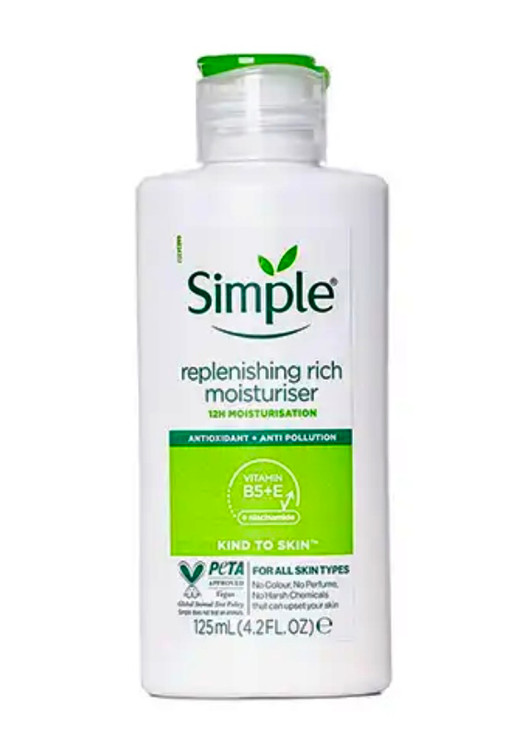 کرم آبرسان Simple Rich حاوی ویتامین B5 و ویتامین E است و با تقویت سد دفاعی پوست، از خشکی و دهیدراته شدن آن جلوگیری میکند. این محصول فاقد عطر، الکل و پارابن بوده و حتی برای پوستهای حساس نیز کاملاً مناسب است.