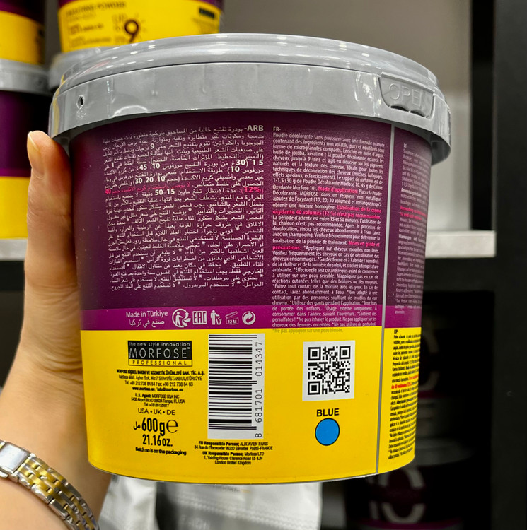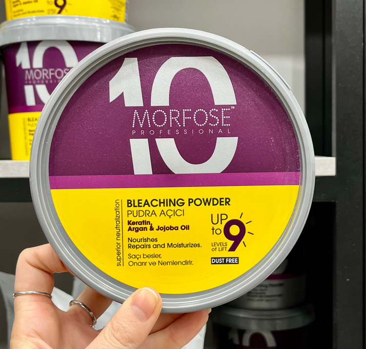 پودر دکلره آبی پایه ۹ مورفوس٫ مناسب انواع مو و انواع تکنیک ها٫ مو را به پایه ۹ رساندن بدون شارژ٫ حاوی رو غن آرگان و پلکس٫ پایه دهی بالا بدون آسیب٫ بدون گردو غبار و آسیب٫ کار شدن پلکس در داخل فرمول پودر٫ جلوگیری از خشکی ساقه مو.