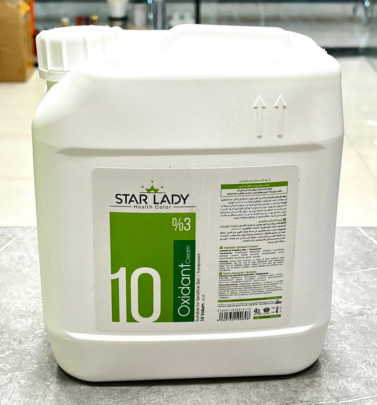 کرم اکسیدان ۴ لیتری استار لیدی ۳٪ ،۶٪ ،۹٪٬ بدون آسیب به مو سازگار با انواع پودر دکلره و رنگ مو٫