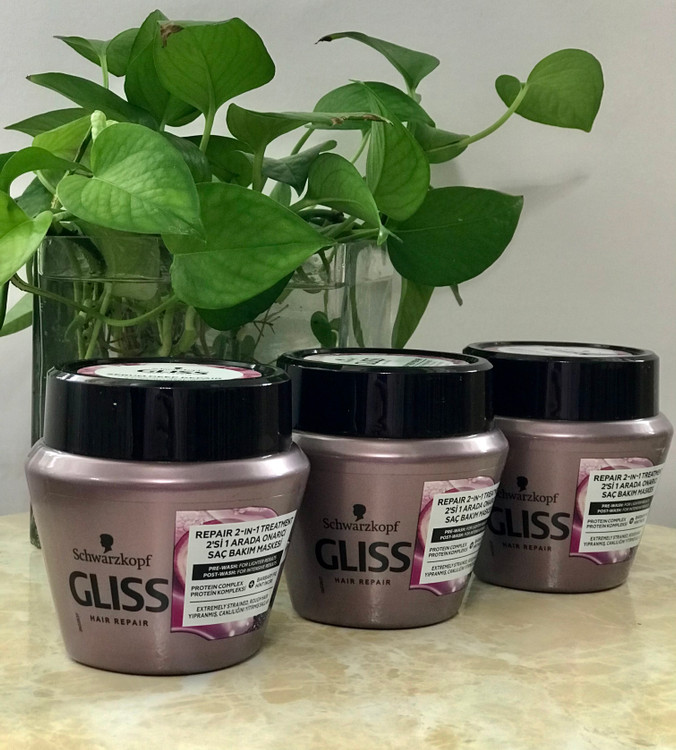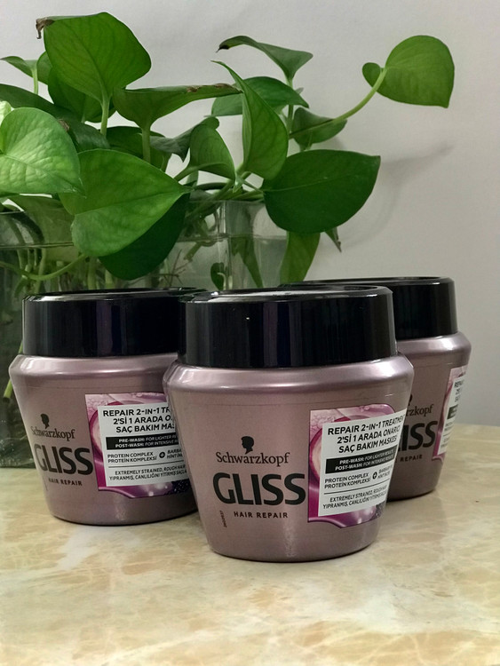 ماسک مو گلیسمدل Repair 2 In 1Treatment حجم 300 میل مناسب موهای خشک، خشن، بد حالت و آسیب دیده است. این ماسک گلیس GLISS جزو محصولات تخصصی مراقبت از مو و ترمیم کننده میباشد. Gliss Deep Repair Hair Mask با دانش روز دنیا و بدست متخصصان کارآمد شرکت شوارتسکف Schwarzkopf آلمان فرموله شده است تا همه افراد بتوانند از داشتن موهایی زیبا، خوش حالت و سالم لذت ببرند. بهبود ساختار مو، حالت پذیری و سهولت شانه کشی،نرم و درخشان شدن مو از عملکردهای این ماسک GLISS محسوب می شوند.