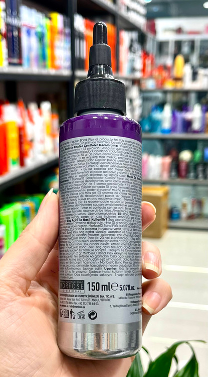به ازای هر 10 گرم پودر روشن کننده مو، 2.5 گرم Morfose 10 Bond Plex اضافه کنید و خوب مخلوط کنید.