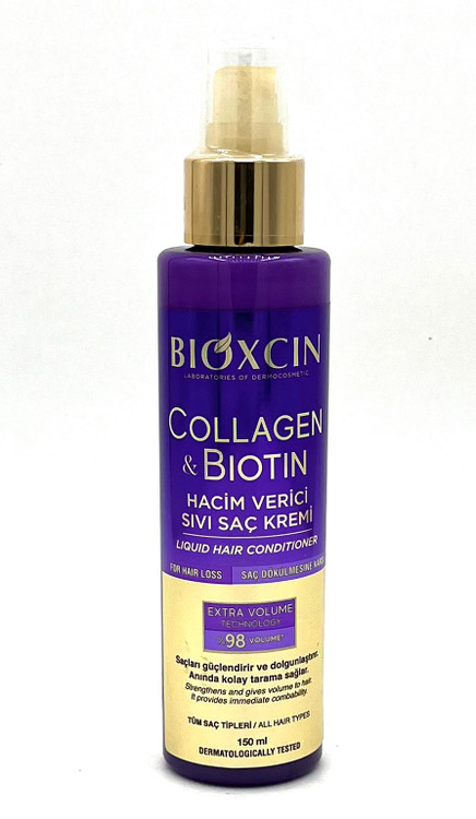 اسپری دوفاز حجم دهنده کلاژن و بیوتین بیوکسین (Bioxcin Collagen & Biotin Two Phase Spray) یک محصول حرفهای مخصوص موهای نازک، کمپشت و ضعیف است که با ترکیب دو فاز مغذی، موها را فوراً پرپشتتر و خوشحجمتر نشان میدهد. وجود کلاژن باعث افزایش استحکام ساقه مو و جلوگیری از شکنندگی شده و بیوتین به عنوان ویتامین تقویتکننده، نقش مهمی در افزایش ضخامت تار مو و کاهش ریزش ایفا میکند.