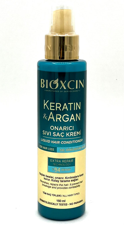 اسپری دوفاز بیوکسین، اسپری ضد ریزش مو، کراتین و آرگان، حجمدهنده مو، نرمکننده مو، شانهپذیری مو، Bioxcin Keratin & Argan Spray، محافظت از موهای نازک، اسپری بعد از حمام